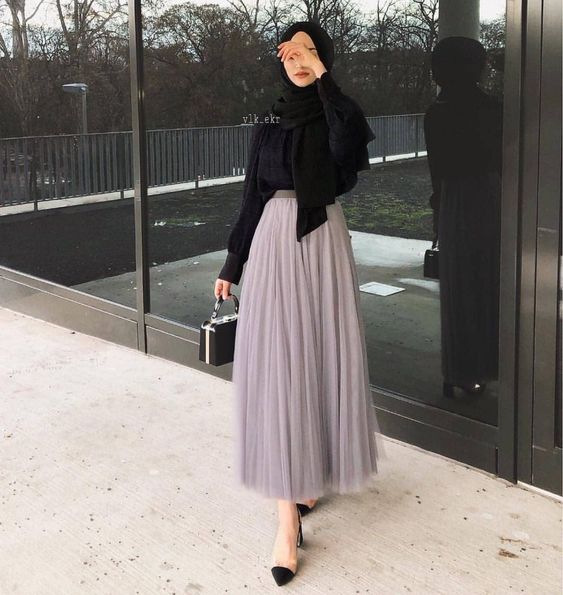Inspirasi outfit hijab dengan penggunaan rok tutu.