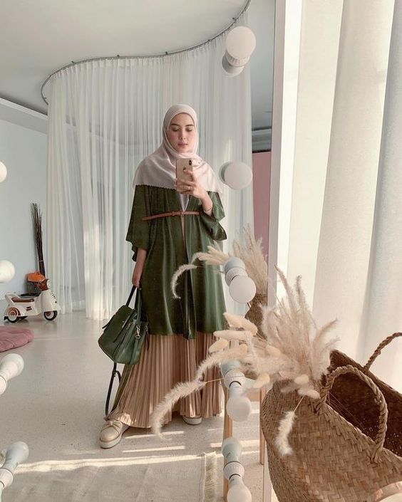Look ini cocok banget lho girls untuk ngantor atau ngampus. Pashmina ceruty, manset, outer, rok plisket. Inspirasi ootd rok plisket dan cardigan lainnya yaitu dengan memadukan pleated skirt dengan long outer atau cardigan bermotif bunga brokat . Akan berangkat kondangan, padu padan dengan outer panjang seperti ini bisa dijadikan pilhan nih. Rok plisket dengan outer kemeja.